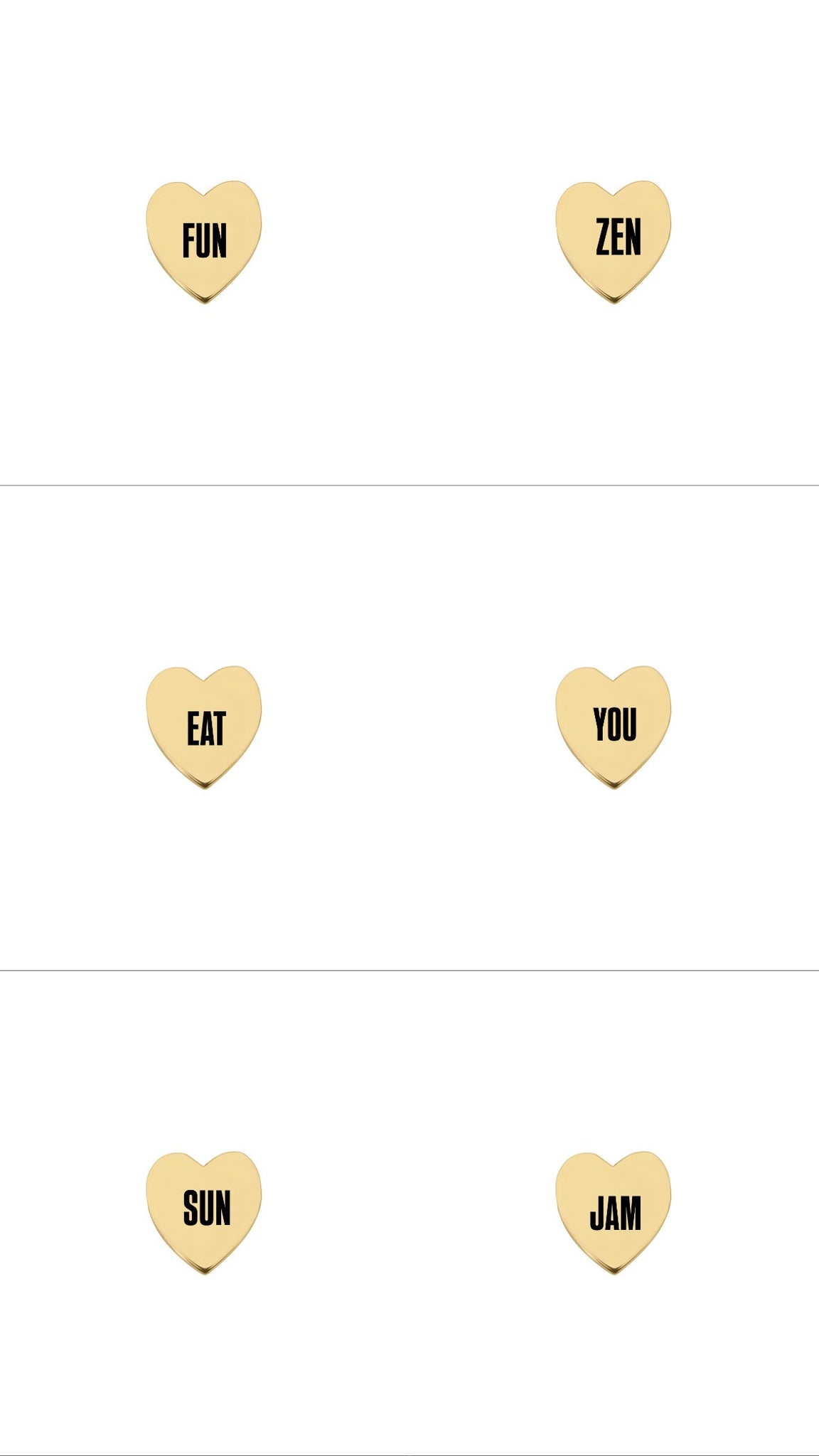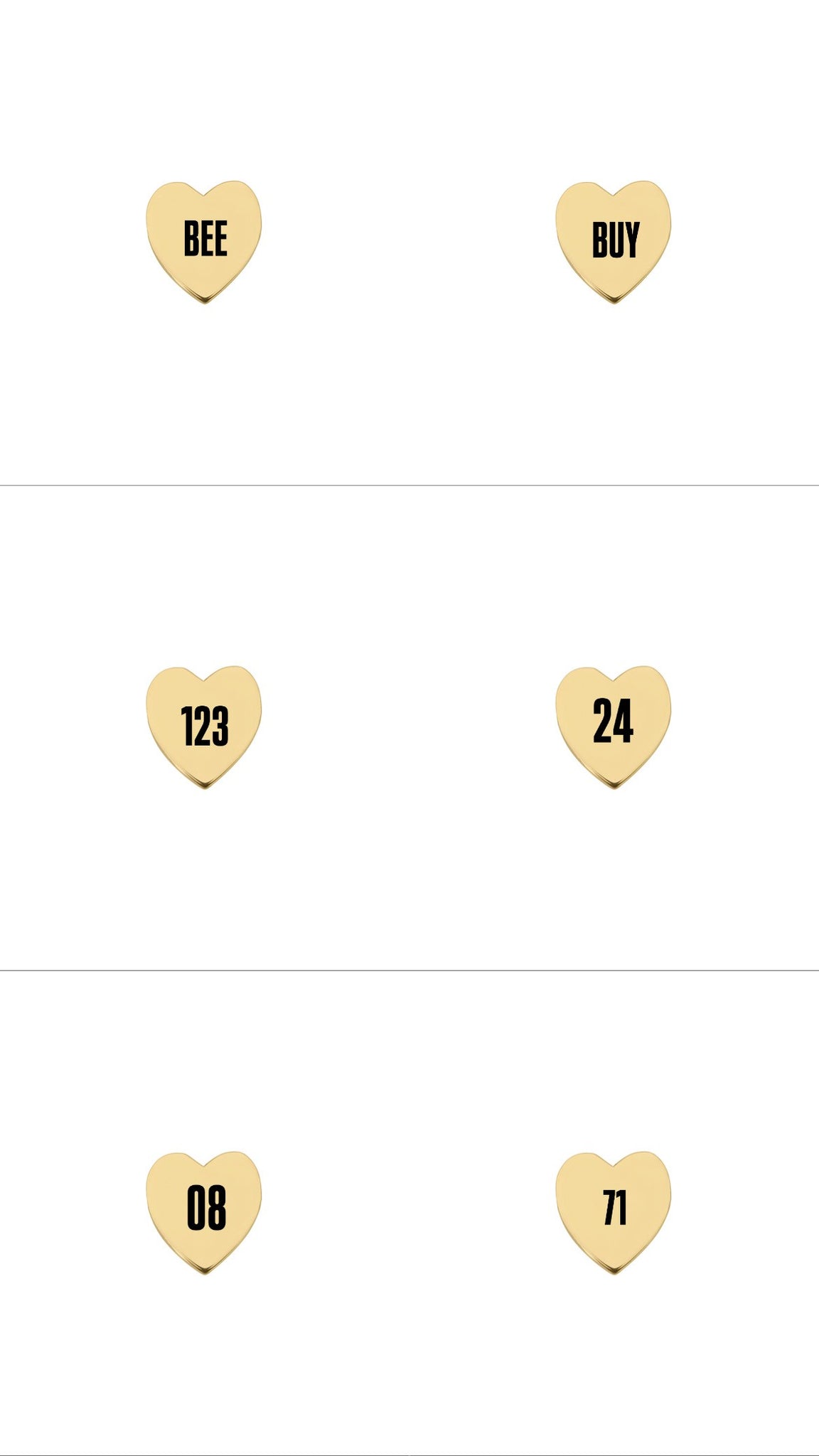 Choose meaningful words or symbols, with up to 3 letters or numbers per heart.