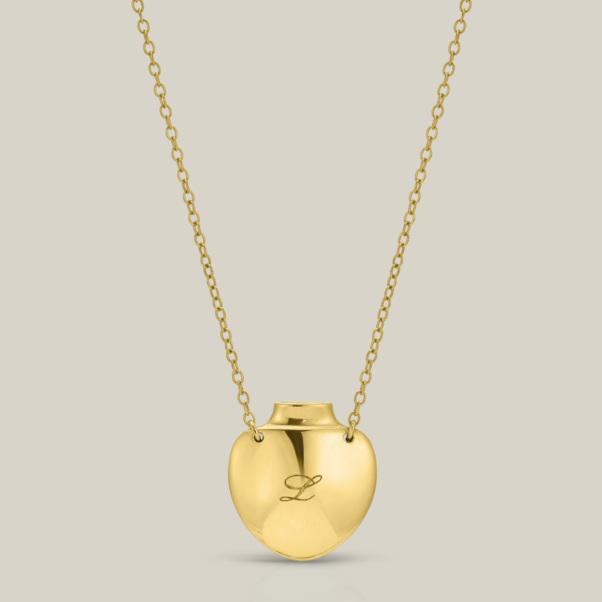 A delicate, sculptural vessel inspired by ancient water carafes and ceremonial recipient, reimagined in a modern silhouette. Since antiquity, the vessel has symbolized life, nourishment, devotion and memory-a container for what is precious and essential. In this modern interpretation, the Vessel necklace becomes a quiet reminder that we each carry love, stories, and strength within us.